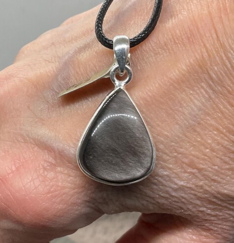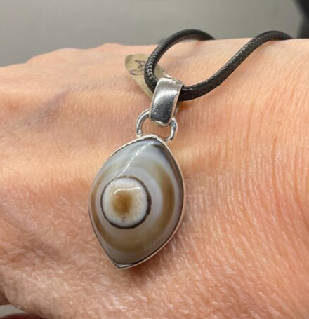 Beautiful pendant on a cord necklace. An elegant item, and exactly as described. The seller was first-rate, and communication with the customer was swift and helpful. Arrived fairly fast.